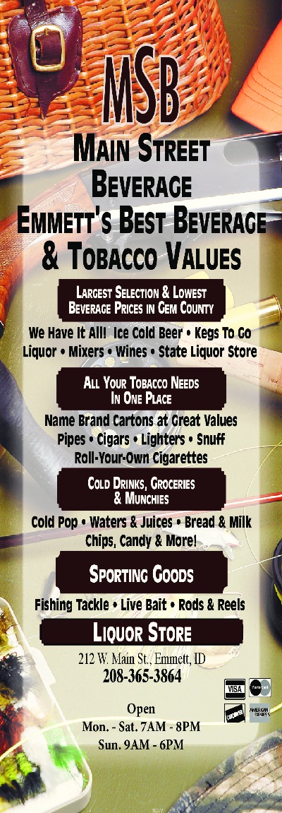 Thank you for visiting the Main Street Beverage website. We are not only the only liquor store in Emmett Idaho, but the have the best prices and selection on all your beverage needs. Whether it is soda pop, beer or wine we have got you covered! Headed fishing or shooting? We have a large selection of fishing tackle and ammunition, all at great prices!